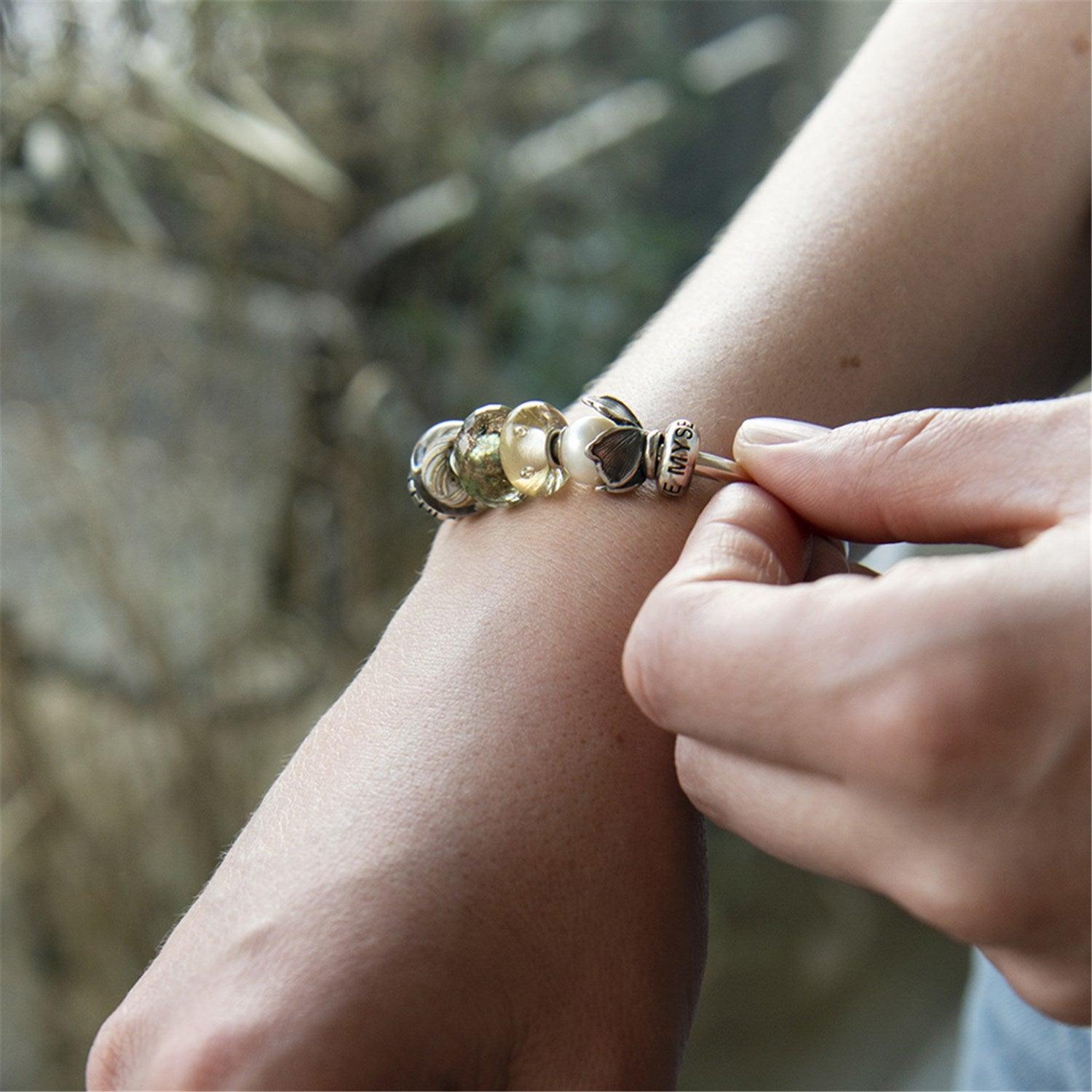 Válassz egy karkötőméretet, játssz a dizájnnal különböző gyöngyök hozzáadásával, amíg el nem éred a kívánt megjelenést, és adj hozzá egy kapcsot a gyöngyök rögzítéséhez.