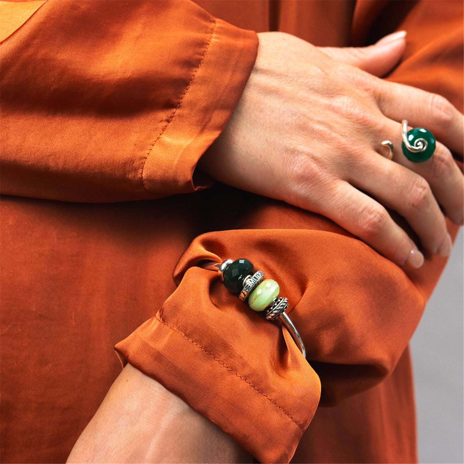 A Peace In Our Time ezüst gyöngy érmére emlékeztet, díszes szegélyekkel és tükörírással a szélén. Ha tintába mártod és papírra nyomod, a gyöngy finom lenyomatot hagy az üzenetből. 🕊️ Hagyd, hogy ez a gyöngy a reményhez való elköteleződésed szimbóluma legyen a karkötődön, a gyöngyös karláncodon vagy a nyakláncodon.